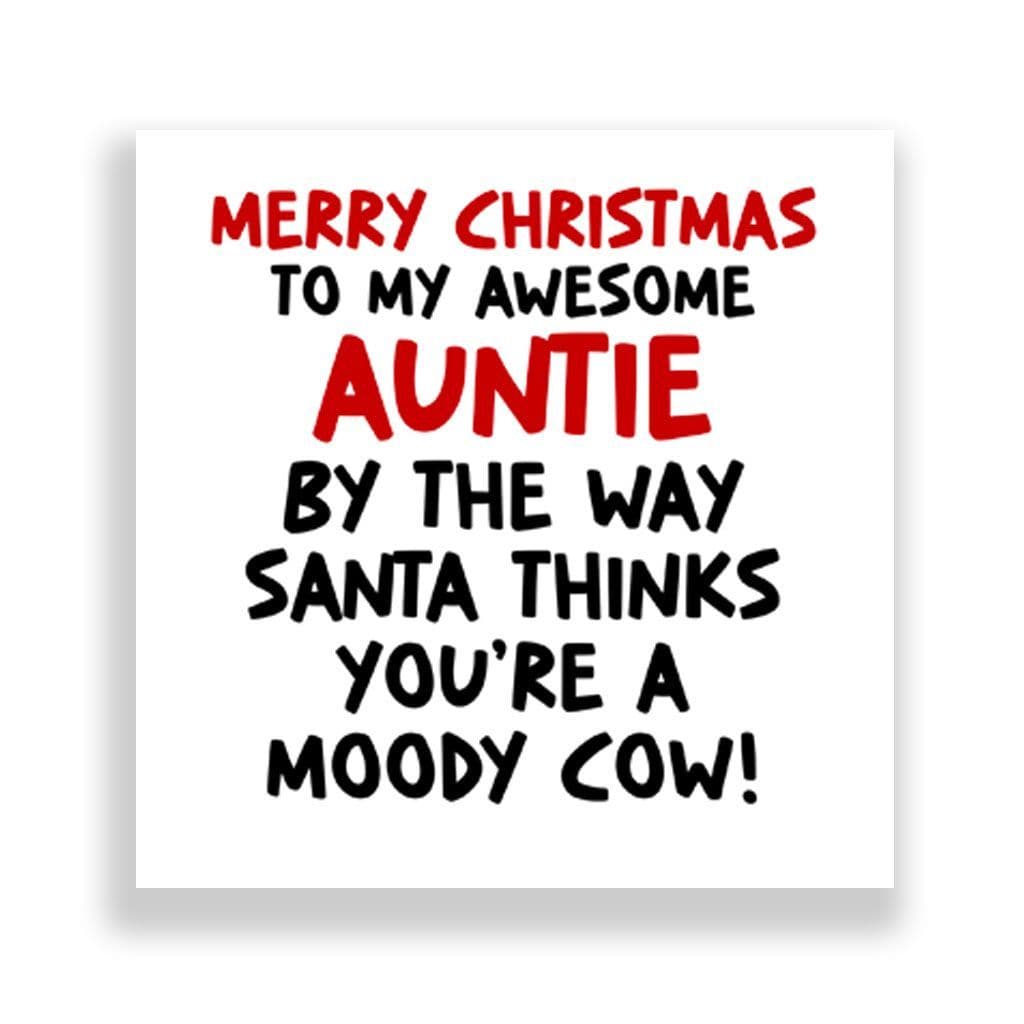 Funny Auntie Christmas Card | Santa Thinks Your A Moody Cow!