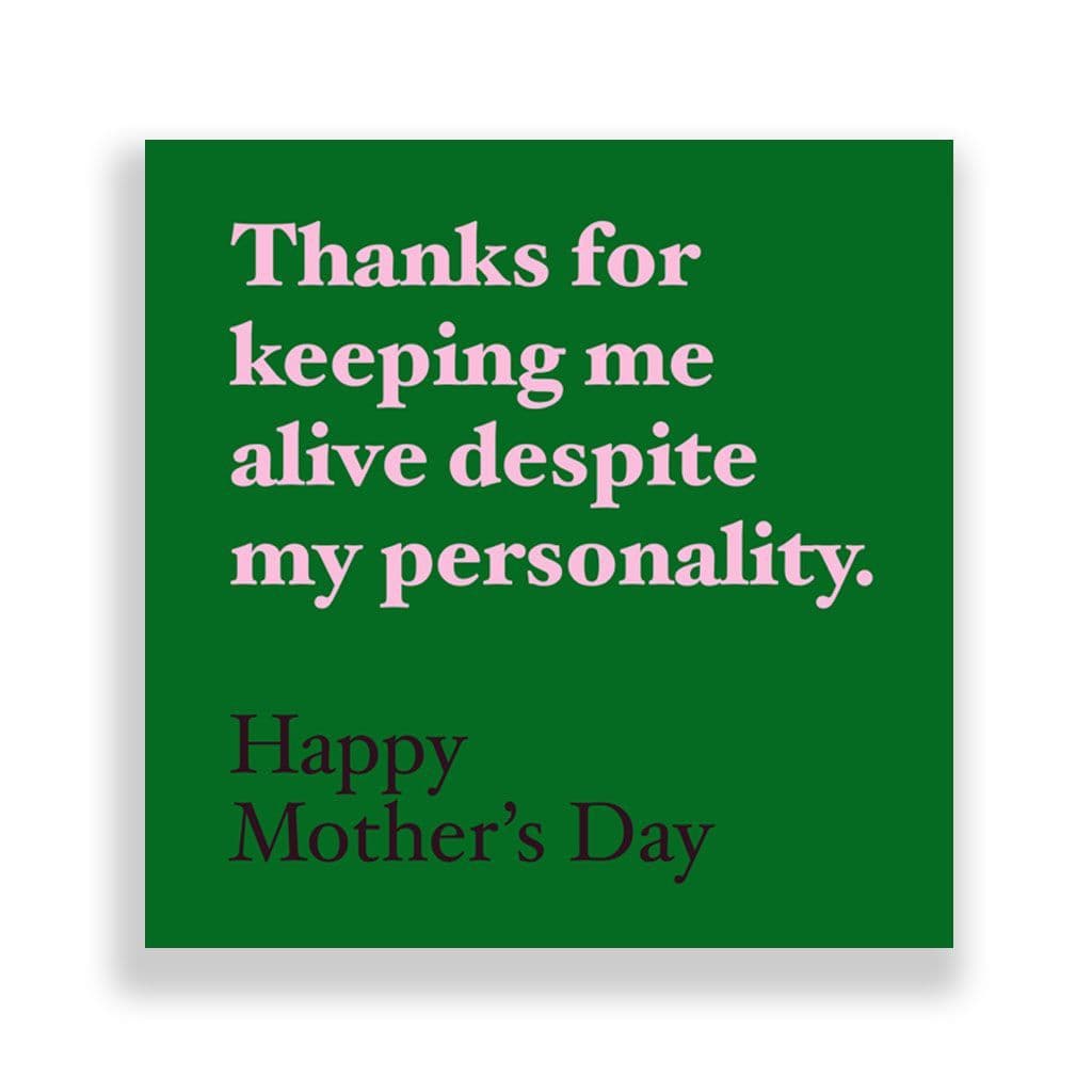 Funny Mother's Day Card | Thanks For Keeping Me Alive Despite My Personality