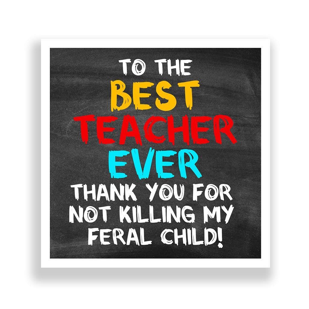 Funny Thank You Teacher Card | Thanks For Not Killing My Feral Child!